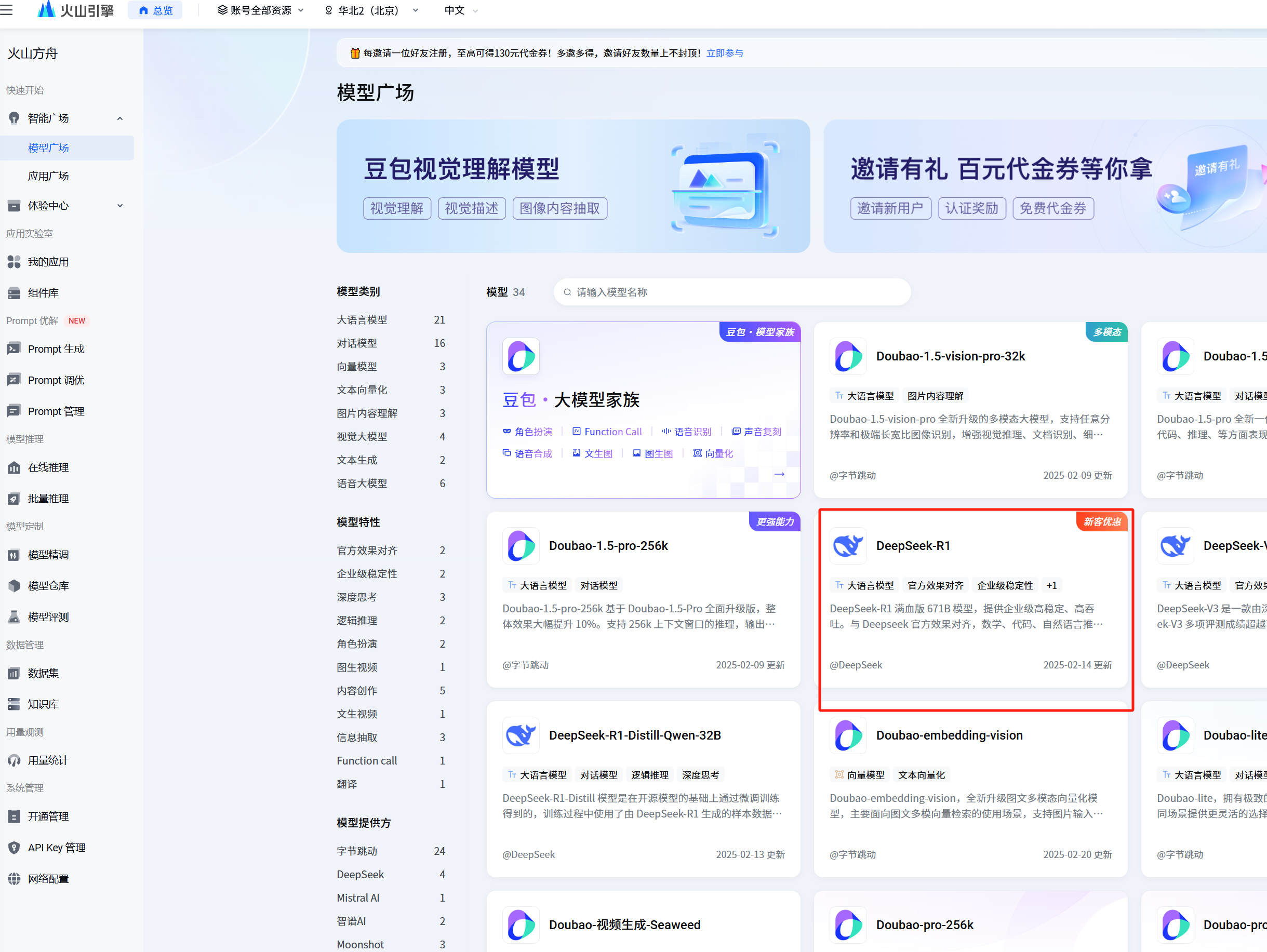 第二步:点击控制台进到下图,再进入deepseek -R1